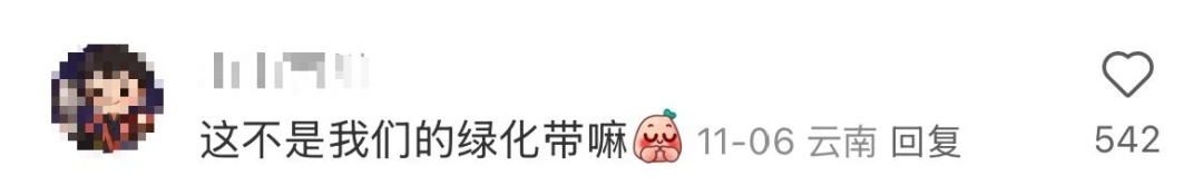 但这还不是最令人震惊的。最令人震惊的,是这位云南网友的评论:这不是我们的绿化带嘛?