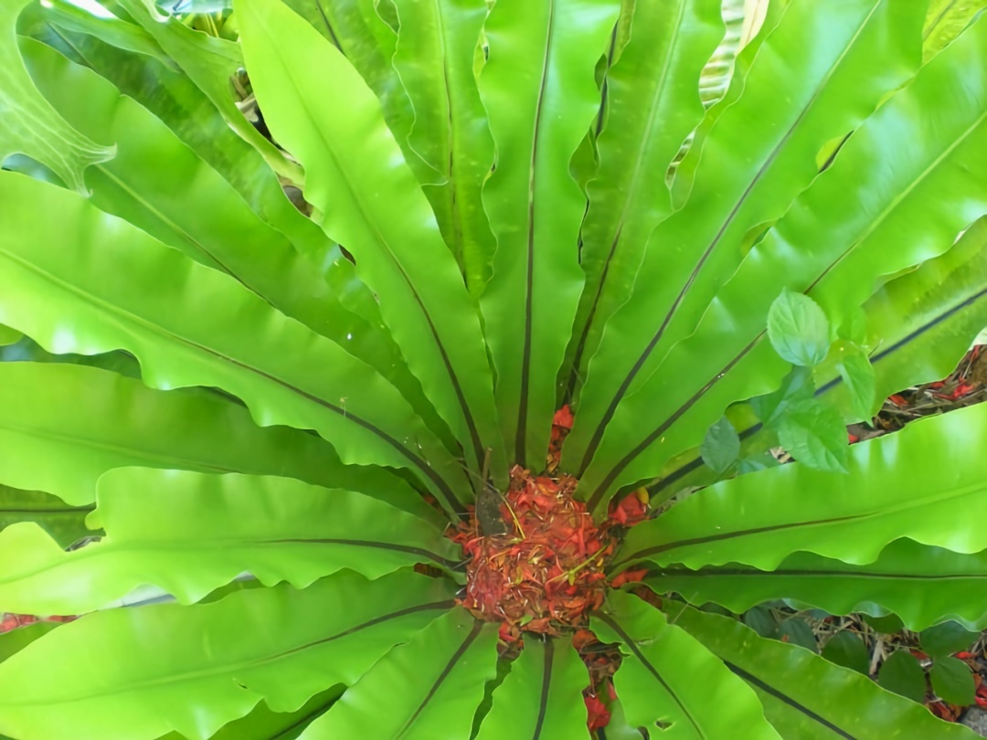 巢蕨叶片边缘微呈波浪形,在阳光下有着半透明的质感,分外美观。作为孢子植物,巢蕨没有开花、结果这一生命过程,而是通过孢子繁殖。