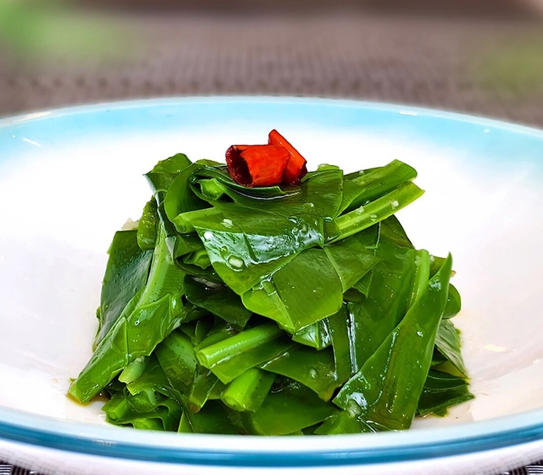 巢蕨和其它蔬菜的采摘方式不同,不能整棵植株采收,真正能用来做菜的只有中间新长出来的嫩叶,将它的顶端剪下后,只要养护得当,叶片还会再生。巢蕨叶片既可以涮火锅,也能炒着吃或者凉拌,吃起来口感脆嫩滑爽,回味清香悠长。